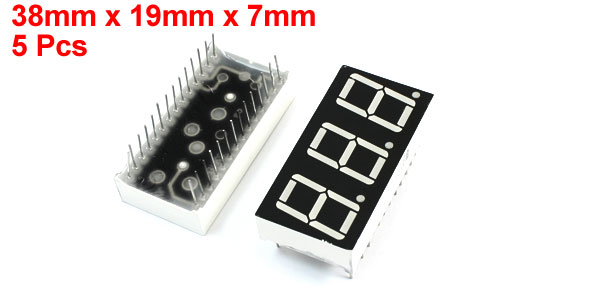 Product Name LED Digital Display Tube Digital Display 3 Digit Emitted Color Green Pin Number 28 Pin Pitch 2mm/0.08" Type Common Anode Size(Not Include Pin) 38 x 19 x 7mm/ 1.5" x 0.75" x 0.28" (L*W*H)