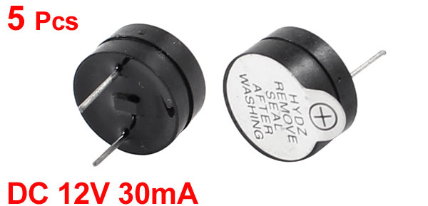 5pcs DC 12V 30mA Industrial Electronic Continuous Sound Buzzer Black 12x6.5mm