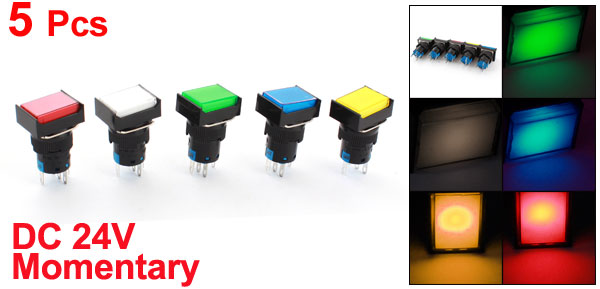5pcs DC 24V Indicator Light SPDT Momentary Rectangle Head Pushbutton Switch 16mm
