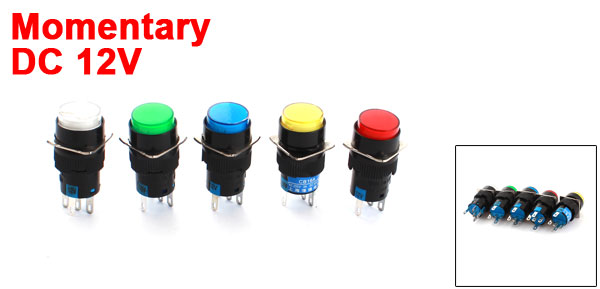 5Pcs DC12V Assorted Color Lamp 16mm Panel Mount SPDT Momentary Pushbutton Switch