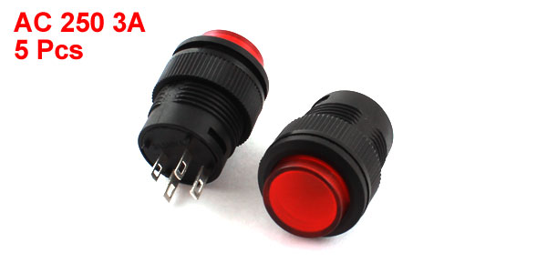 Item Name Push Button Switch Action Type Latching Light Voltage DC3V Contact Type SPST Working Voltage Current AC 250 3A Light Color Red Button Diameter 13mm/0.51" Mounting Diameter 15mm/0.59" Total Size 24 x 18mm/0.94" x 0.71"(H* Max.D) External Material Plastic, Metal Color Red, Black Net Weight 23g Package Content 1 x Push Button Switches - Reviews