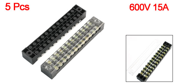 5pcs Dual Rows 12 Positions Clear Covered Screw Terminal Barrier Block 600V 15A