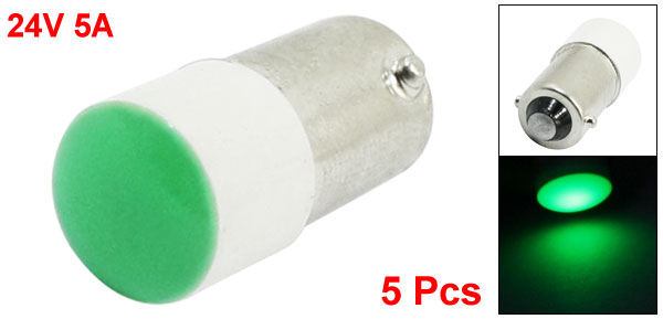 5pcs Electrical BA9S Mounted Green LED Indicator Light Lamp Bulb 24V 5A