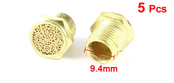 5pcs Gold Tone 9.4mm Male Thread Pneumatic Exhaust Sound Muffler Silencer SLM-01