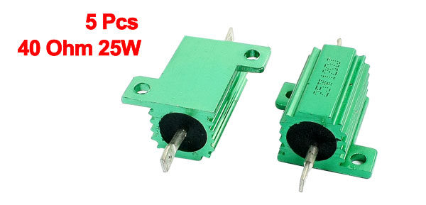 5PCS Green 40 Ohm 25Watt Aluminum Chassis Mounted Wirewound Resistor