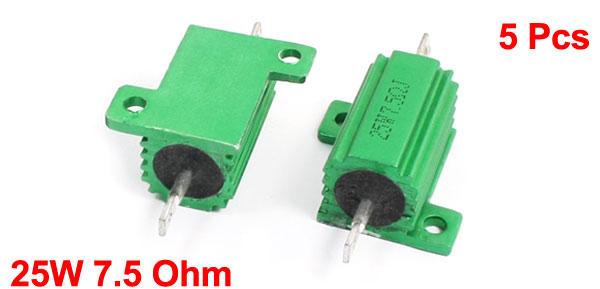 5PCS Green 7.5 Ohm 25Watt 5% Aluminum Housed Wirewound Resistors