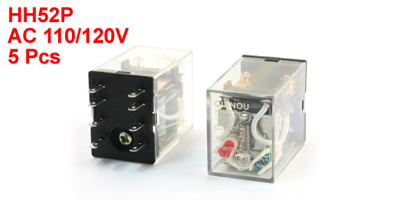 5pcs HH52P AC 110/120V Coil DPDT 8 Pin Electromagnetic Power Relay