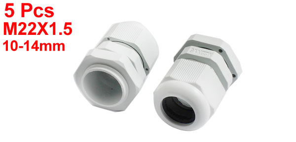 5Pcs M22x1.5 White Nylon 10-14mm Waterproof Cable Glands Connectors