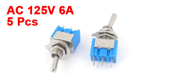 5pcs MTS-102 3-Pin SPDT ON-ON 6A 125VAC Mini Toggle Switches NEW