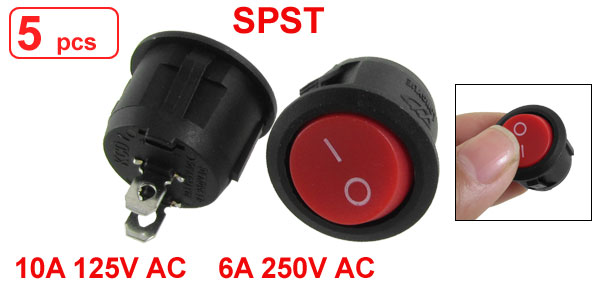 5pcs ON-OFF I/O SPST 2 Pin Snap in Round Boat Rocker Switch 6A/250V 10A/125V AC