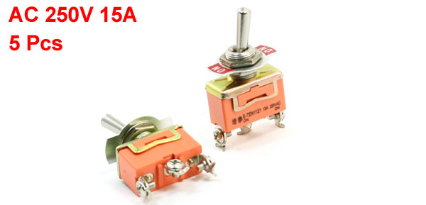 Product Name Toggle Switch Rating AC 250V 15A Pin Number 3 Terminals Position 2 Position (On/On) Type SPDT, Latching Screw Diameter 12mm/0.47" Total Size(Approx.) 5.5 x 2.8 x 1.3cm / 2.2" x 1.1" x 0.5"(L*W*T)