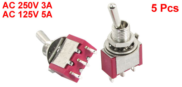 5pcs Panel Mount ON/ON SPDT Burgundy Latching Toggle Switch AC 250V 3A