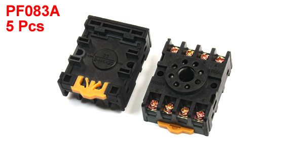 Details5pcs PF083A 8 Pins Screw Terminals Power Relay Socket Base for JTX-2C DH48S  Product Name Relay Socket Base Model PF083A Fit for JTX-2C DH48S Pin Quantity 8 Total Size(Approx) 5.3 x 4 x 2cm / 2.1" x 1.6" x 0.8" (L*W*H) Installing Hole Dia 4mm /0.16" Installing Hole Center Distance 33mm/1.3" Mounting DIN Rail Width 35mm External Material Plastic Main Color Black Net Weight 170g Package Content 5 x Socket Base