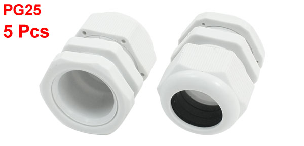 Product Name Cable Gland Model PG25 Operating Temperature -40~+100°C/-40~212F Cable Range 16-21mm / 0.63"-0.83" Thread O.D. 30mm / 1.2" Thread Length 12mm/0.47" Total Size 3.5 x 4.4cm / 1.3" x 1.8" (Max.D*H) Material Plastic Color White Weight 107g Package Content 5 Pcs x Cable Glands - Reviews