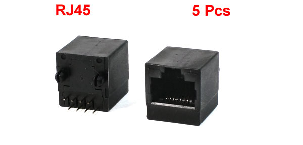 5Pcs Plastic Shell Right Angle 8P8C RJ45 Network PCB Jacks 0.6" x 0.6" x 0.6"
