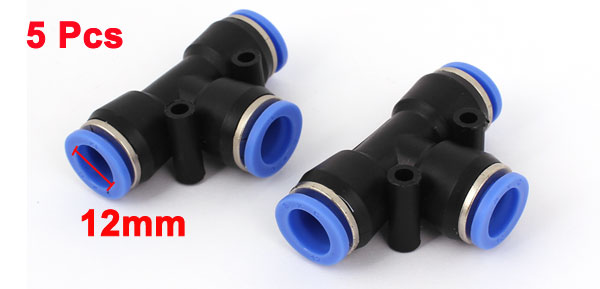 5pcs Pneumatic T Connector 12mm Dia Air Tube Quick Release Fittings
