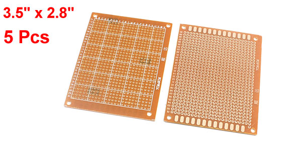 Product Name Universal PCB Board Hole Dia(Approx) 1mm / 0.039" Hole Pitch(Approx) 2.54cm / 0.1" Size(Approx) 9 x 7cm / 3.5" x 2.8"(L*W) Thickness(Approx) 1.3mm / 0.051" Material FR-4 Color Copper Tone Net Weight 35g Package Content 5 x Universal PCB Board - Reviews