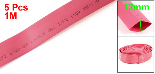 5PCS Ratio 2:1 12mm Dia Red Polyolefin Heat Shrinkable Tube Tubing 3.2 Feet