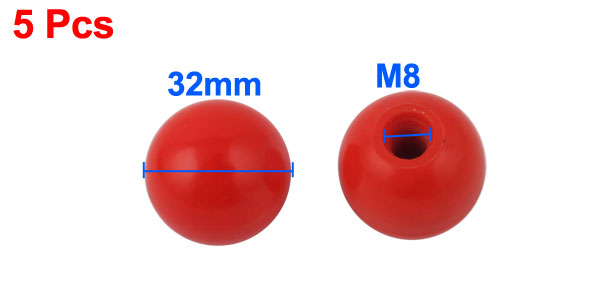 5pcs Red 32mm Dia Ball Shift Knob w M8 Thread Inserted for Machine Tool
