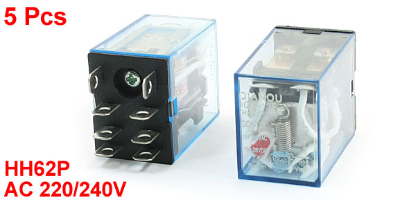 5pcs Red LED Indicator Light AC 220/240V Power Relay DPDT 2NO 2NC HH62P