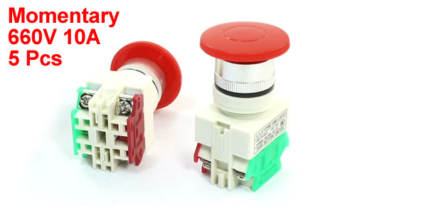 5pcs Red Mushroom Head 4-Terminals Momentary Push Button Switch 660V 10A