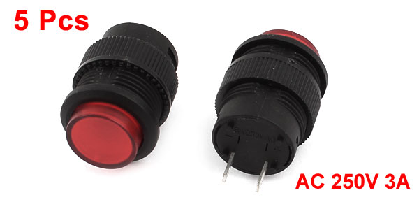 5pcs Replacement Momentary SPST Red Round Push Button Switch AC 250V 3A