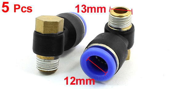 5pcs Right Angle 1/4"PT Male Thread to 12mm 2 Ways Quick Fittings Coupler