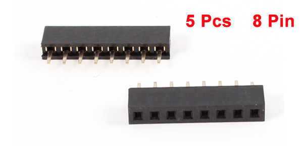 Product Name Female Pin Header Socket Number of Pins 8 Number of Rows 1 Pin Pitch 2mm/0.08'' Pin Length 3mm / 0.12" Size 17 x 2 x 7mm/0.6" x 0.08'' x 0.3"'(L*W*H) Material Plastic, Metal Main Color Black, Silver Tone Net Weight 3g Package Content 5 x Female Pin Header Socket - Reviews