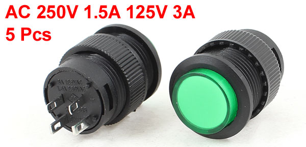 5pcs SPST Green 4 Terminal Momentary Push Button Switch AC 250V 1.5A 125V 3A