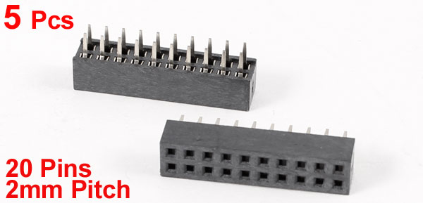 Product Name Pin Header Pin Quantity 20 Row 2 Mounting Angle Straight Pin Pitch 2mm/ 0.08" Total Size 21 x 5 x 7mm/ 0.8" x 0.2" x 0.3"( L*W*H) Material Plastic, Metal Color Black Weight 5g Package Content 5 x Pin Headers - Reviews