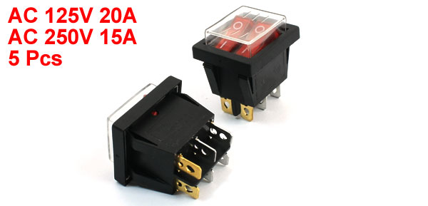 AC 250V 15ATotal Size 35 x 29 x 39mm / 1.4" x 1.1" x 1.5"(L*W*T) Mount Hole Size 31 x 22mm / 1.2" x 0.87"(L*W) Lamp Color Red External Color Black, Red Material Plastic & Metal Weight 88g Package Content 5 x Waterproof Rocker Switch - Reviews