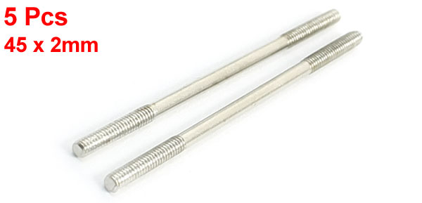 Details5Pcs Two Way Steel Main Blade Linkage Rod M2 x 45mm Silver Tone  Product Name RC Airplane Main Blade Linkage Rod Overall Size 45 x 2mm/ 1.8" x 0.08"(L*Max.D) Thread Part Size(Each End) 12 x 2mm/ 0.47" x 0.08"(L*D) Material Steel Color Silver Tone Weight 5g Package Content 5 x RC Airplane Main Blade Linkage Rod