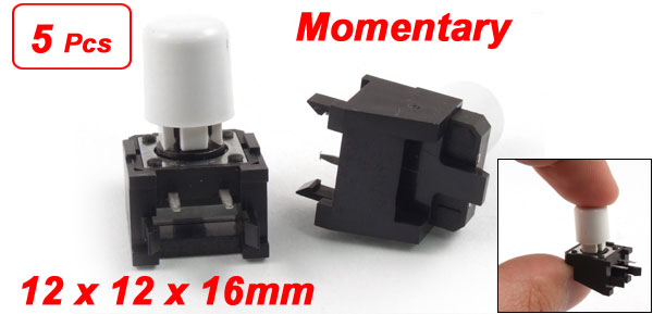 5pcs White Cap Momentary Tactile Push Button Switch Right Angle 12 x 12mm x 16mm
