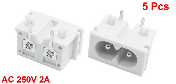 5Pcs White Plastic PCB Board IEC320 Inlet C8 Power Adapter Outlet AC 250V 2A