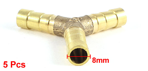 Product Name Hose Barb Design Y Shape, 3 Ways Type 8mm to 8mm Material Brass Size(Approx.) 4.7 x 4.1 x 0.8cm/ 1.9" x 1.6" x 0.3"(L*W*T) Color Gold Tone Weight 53g Package Content 5 x Hose Barb - Reviews