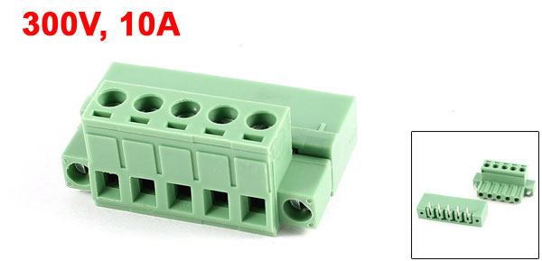 5Pin 5.08mm Spacing PCB Screw Green Terminal Block Connector 300V 10A AWG24-12