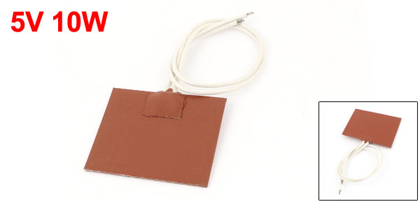 Main Color Orange Red Country of Manufacture CHINA Power Density 0.1-1.2W/cm2 Power 10W Maximum Service Temperature 200C Withstand Voltage Strength 1500V/5s Material Silicone Rubber Power Telorence +/-8% Working Voltage 5V Net Weight 13g Insulation Resistance >=50Mohm Package Content 1 x Silicone Rubber Heater Insulation Material Heat Resistance 250C (Max.) Mechanical Pressure 100kg/cm2 Size 55 x 45 x 1.5mm/ 2.2 x 1.8 x 0.6inches (L*W*H) Wires Length 20cm/ 8 inches - Reviews