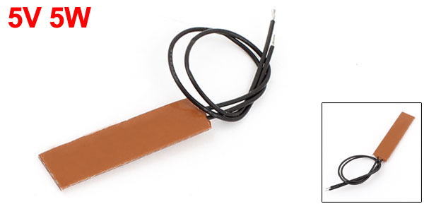 Main Color Orange Red Country of Manufacture CHINA Power Density 0.1-1.2W/cm2 Power 5W Maximum Service Temperature 200C Withstand Voltage Strength 1500V/5s Material Silicone Rubber Working Voltage 5V Power Telorence +/-8% Net Weight 2g Insulation Resistance >=50Mohm Package Content 1 x Silicone Rubber Heater Insulation Material Heat Resistance 250C (Max.) Mechanical Pressure 100kg/cm2 Size 40 x 10 x 1.5mm/ 1.6 x 0.4 x 0.06 inches (L*W*H) Wires Length 20cm/ 8 inches - Reviews