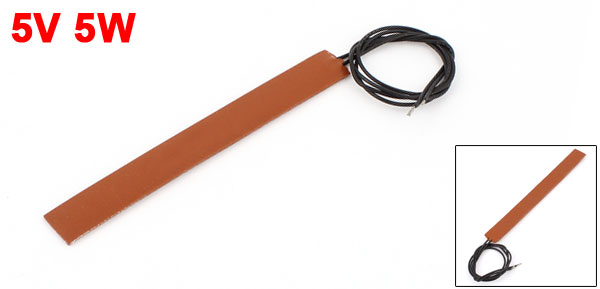 Main Color Orange Red Country of Manufacture CHINA Power Density 0.1-1.2W/cm2 Power 5W Withstand Voltage Strength 1500V/5s Maximum Service Temperature 200C Material Silicone Rubber Working Voltage 5V Power Telorence +/-8% Net Weight 5g Insulation Resistance >=50Mohm Package Content 1 x Silicone Rubber Heater Insulation Material Heat Resistance 250C (Max.) Mechanical Pressure 100kg/cm2 Wires Length 20cm/ 8 inch Size 90 x 10 x 1.5mm/ 3.5 x 0.4 x 0.06inch (L*W*H) - Reviews