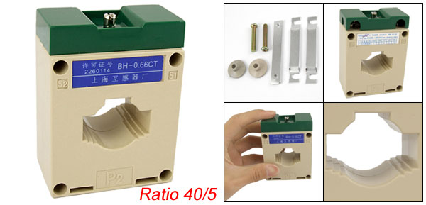Product Name Current Transformer Model Number BH-0.66CT Rated Current Ratio 40/5 Accuracy Class 0.5 Conductor Through 1T Rated Load 5VA Prescribed Minimum 3.75VA Frequency 50/60Hz Rated Voltage 0.66KV Primary Current(A) 200 100 50 40 20 Primary Coil Number of Turns 1 2 4 5 10 Perforation Size 23mm(Diameter), 30.5 x 11mm Overall Size 80 x 60 x 37mm/3.1" x 2.4" x 1.5"(L*W*T) Color As Picture Shown Weight 259g Package Content 1 x Current Transformer