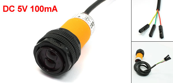 Product Name Photoelectric Sensor Model E18-D50NK Rating 5VDC 100mA Detection Range 3-80cm (Adjustable) Body Size 4.5 x 2.3cm/1.8" x 0.9"(H*D) Thread Dia 16mm Thread Size 3/8PT Cable Length 52cm/20.5" Material Plastic, Electronic Part Color Black, Orange Net Weight 20g Package 1 x Photoelectric Sensor - Reviews