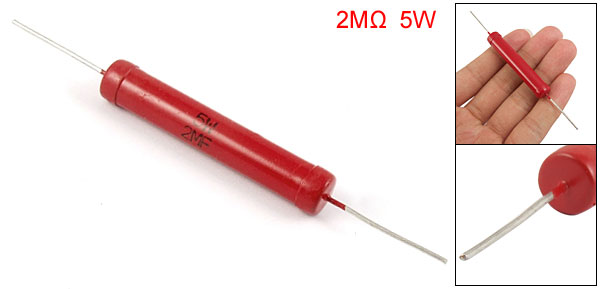 Product Name Glass Glaze Film Resistor Resistance Value 2MΩ Power Rating 5W Resistance Tolerance ± 1% (F) Pin Size(Each Side) 26 x 1mm/ 1" x 0.039"(L*D) Body Size 5 x 0.8cm/ 2" x 0.3" (L*D) External Material Glass Glaze, Metal Color Red, Silver Tone Net Weight 10g Package Content 1 x High Voltage Glaze Resistor - Reviews