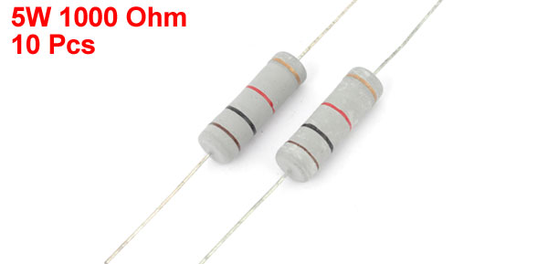 5W 1000 Ohm Axial Leads 5% DIP Fixed Carbon Film Resistor 10 Pcs