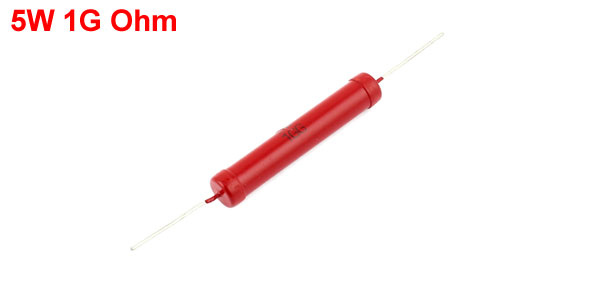 Details5W 1G Ohm 2% Tolerance Axial Lead Glaze High Voltage Load Resistor Red  Product Name High Voltage Resistor Resistance Value 1G Ohm Power Rating 5W Resistance Tolerance ± 2% (G) Body Size 50 x 8mm /2" x 0.32" (L*D) Lead Size 25 x 1mm/0.98" x 0.04"(L*D) External Material Glass Glaze, Metal Color Red, Silver Tone Weight 10g Package Content 1Pcs x High Voltage Resistor