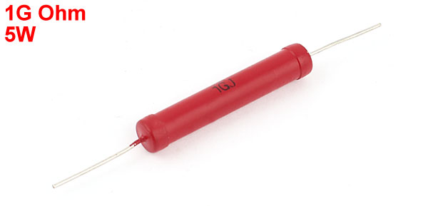 Product Name High Voltage Resistor Resistance Value 1G Ohm Power Rating 5W Resistance Tolerance +/-5% (J) Body Size 51 x 9mm/2" x 0.35"(L*D) Total Length 102mm/4" External Material Glass Glaze, Metal Color Red, Silver Tone Weight 9g Package Content 1 x High Voltage Resistor - Reviews