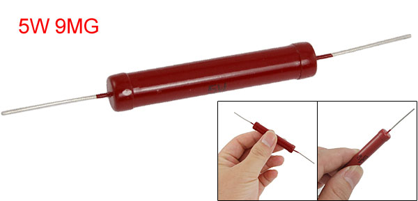 Product Name Glass Glaze Film Resistor Resistance Value 9M Ω Power Rating 5W Resistance Tolerance ± 2% (G) Pin Size(Each Side) 26 x 1mm/ 1" x 0.039"(L*D) Body Size 5 x 0.8cm/ 2" x 0.3" (L*D) External Material Glass Glaze, Metal Color Red, Silver Tone Net Weight 10g Package Content 1 x High Voltage Glaze Resistor - Reviews