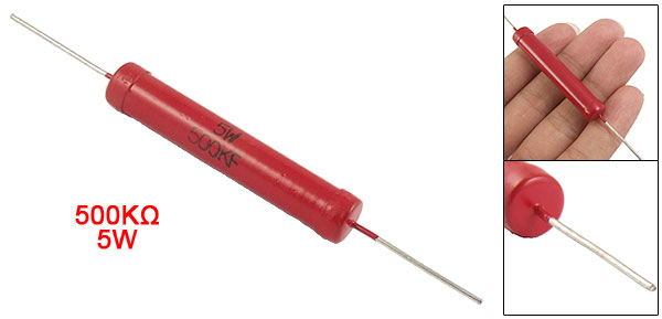 Product Name Glass Glaze Film Resistor Resistance Value 500KΩ Power Rating 5W Resistance Tolerance ± 1% (F) Pin Size(Each Side) 26 x 1mm/ 1" x 0.039"(L*D) Body Size 5 x 0.8cm/ 2" x 0.3" (L*D) External Material Glass Glaze, Metal Color Red, Silver Tone Net Weight 10g Package Content 1 x High Voltage Glaze Resistor - Reviews