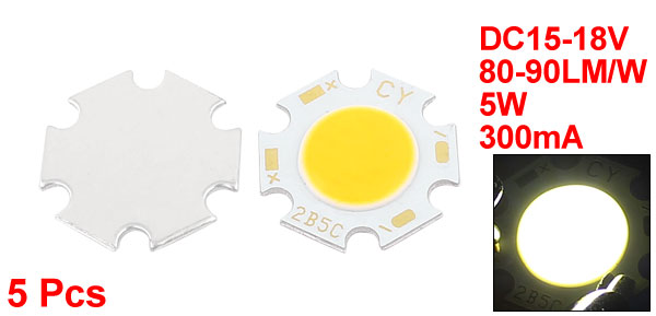 5W DC15-18V 300mA 80-90LM/W Warm White LED Light COB Lamp Bead Chip 5 Pcs