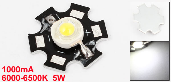 Product Name LED Emitter DC Forward Voltage 3.0-4.0V DC Forward Current 1000mA Luminous Flux 290-300LM Color Temperature 6000-6500K Power Consumption 5W Material Electronic Parts Emitter Diameter 5mm/ 0.2'' Heat Sink Base Dia 20mm/ 0.79'' Light Color White Net Weight 2g Package Content 1 x LED Emitter - Reviews