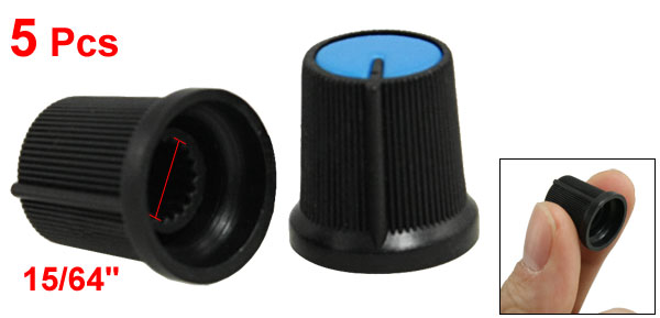 Details5x 15/64" Split Shaft Insert Dia Blue Black Potentiometer Knobs Caps  Product Name Potentiometer Control Knob Knob Top Diameter 12mm / 0.47" Knob Base Diameter 15mm / 0.59" Shaft Insert Diameter 6mm / 15/64" Knob Total Height 15mm / 0.59" Material Plastic Main Color Black, Blue Weight 6g Package Included 5 x Potentiometer Control Knob